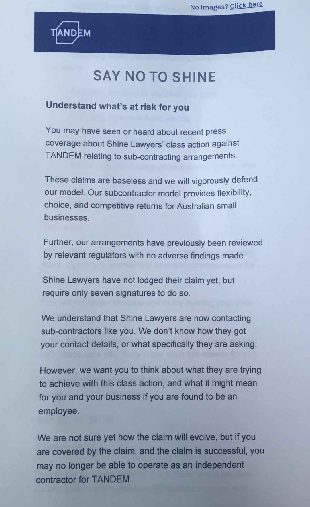Tandem (and even the CWU NSW Postal Branch at Parramatta) is misleading you in relation to the class action initiated by Shine Lawyers.