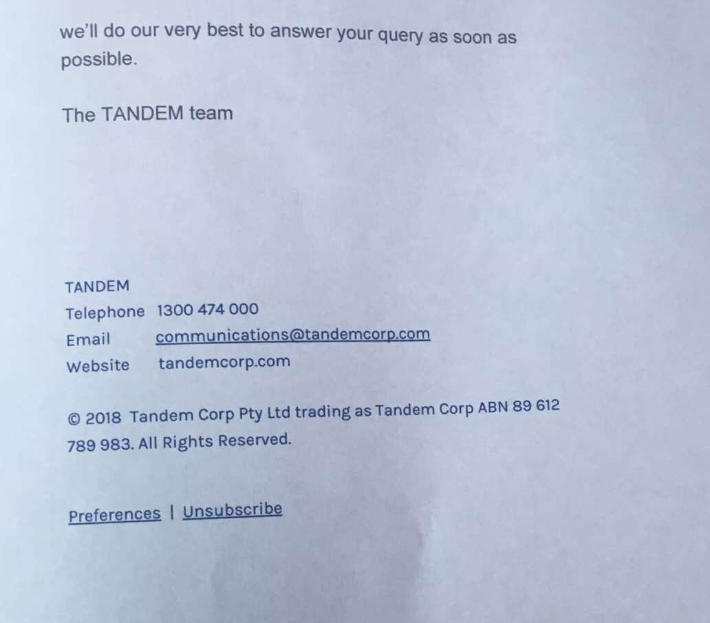However, part of Tandem will survive through a related entity not subject to the class action called Tandem Networks, which was set up a year after the court case was lodged and recently signed a new $30 million contract with Telstra starting on July 1.